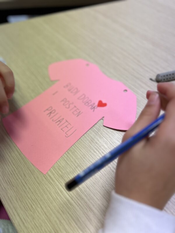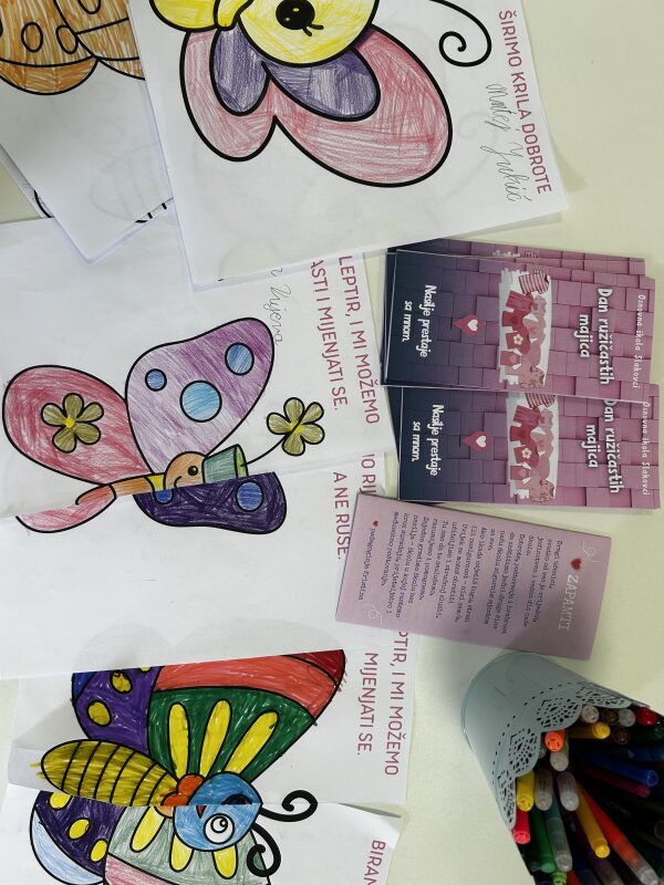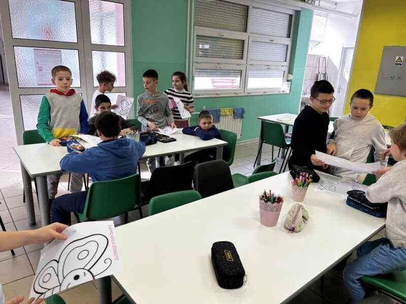 S učenicima razredne nastave proveli smo kreativnu aktivnost bojanja leptira. Leptir smo odabrali kao simbol promjene, rasta i nove prilike. Učenici su kroz razgovor istraživali zašto upravo leptir može biti znak nenasilja, prihvaćanja i osobnog razvoja te su pronalazili i govorili o vrijednostima koje želimo živjeti u školi.