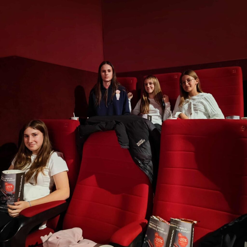 Učenici koji pohađaju B1 aktivnost Dramska skupina zajedno s voditeljicom aktivnosti, učiteljicom Mirjanom Džakulom, danas su posjetili kino gdje su zajedno pogledali film Drugi dnevnik Pauline P..
