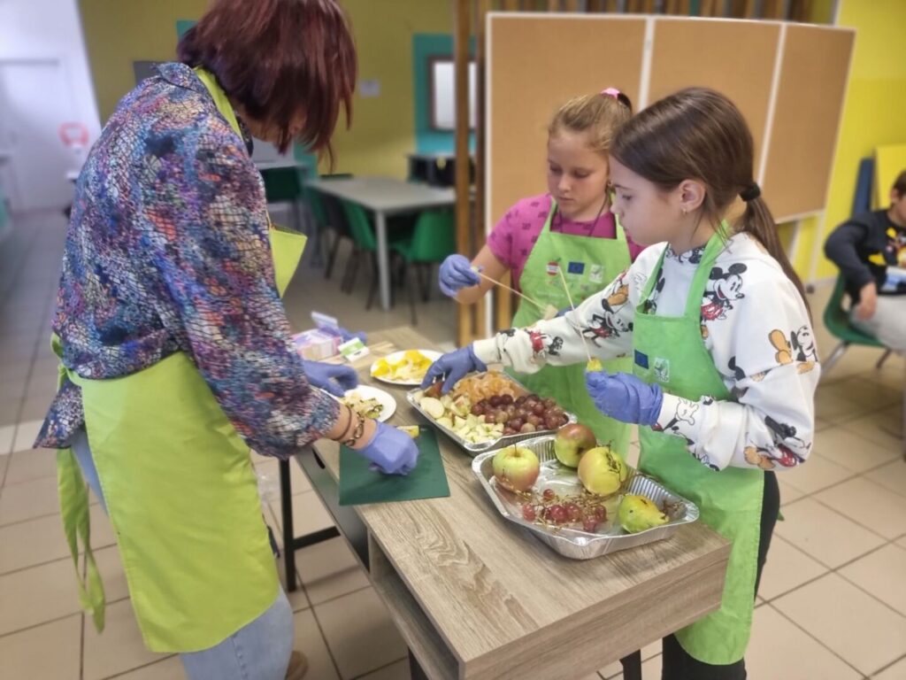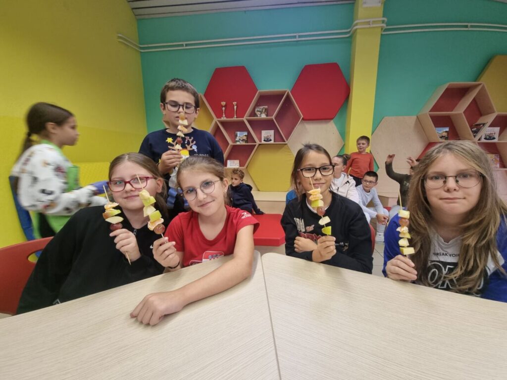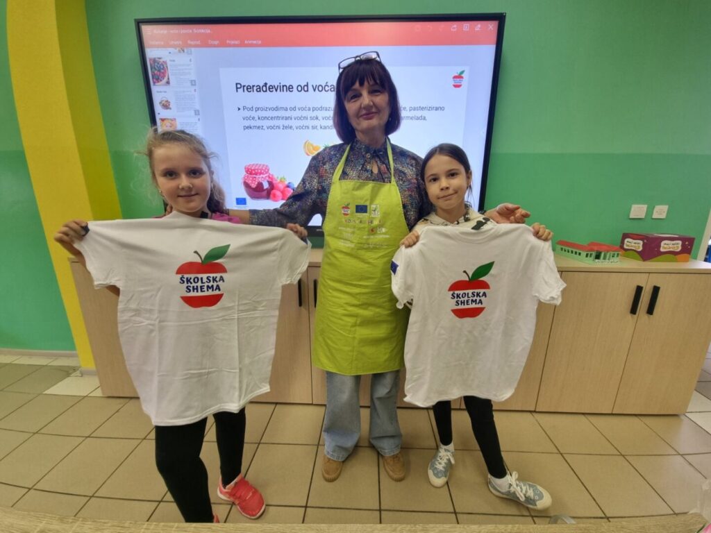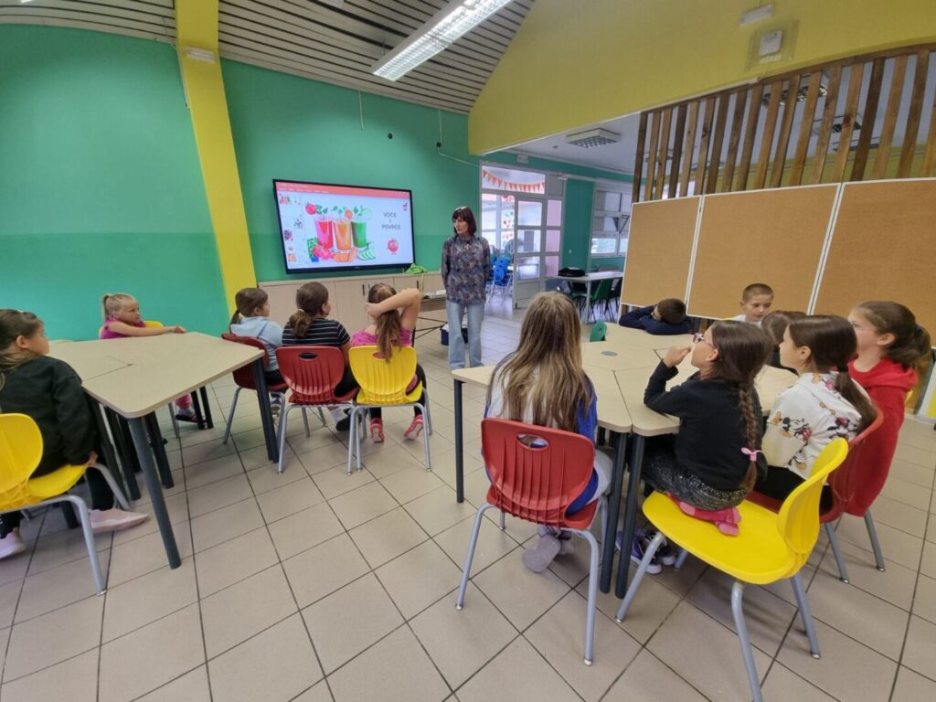U četvrtak, 9. listopada, u sklopu projekta Školska shema voća i povrća, za učenike nižih razreda održan je edukativni sat o pravilnoj prehrani i mogućnosti kušanja voća. Cilj aktivnosti bio je potaknuti djecu na zdrave prehrambene navike i upoznati ih s različitim vrstama voća. Djeca su imala priliku kušati jabuke, kruške, mandarine i grožđe. Razgovarali su o važnosti voća i povrća za zdravlje, prepoznavali boje, mirise i okuse te učili kako voće doprinosi jačanju imuniteta. Sat je protekao u veselom raspoloženju, a učenici su s oduševljenjem zaključili da je zdrava hrana i ukusna!