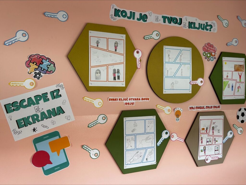 Kao završni dio aktivnosti, učenici su na obrisima ključa zapisivali svoje prijedloge za aktivnosti koje tijekom vikenda mogu raditi kod kuće bez ekrana – od boravka u prirodi, sporta i čitanja do crtanja, pomaganja u obitelji i druženja s prijateljima. Svi ključevi objedinjeni su na zajedničkom panou pod nazivom