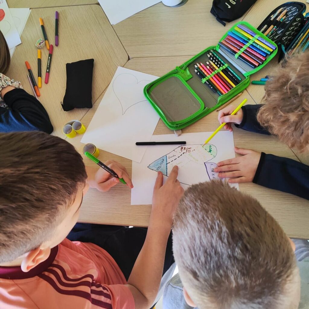 Učenici 6. razreda na satu Hrvatskoga jezika pokazali su koliko su maštoviti i kreativni izradivši slikovnicu „Gospođica Ljubav“. Kroz ilustracije i priču, prema zadanim uputama učiteljice Mirjane Džakule, dočarali su jednu nježnu ljubavnu priču. Danas su svoju slikovnicu s ponosom predstavili učenicima 2. razreda, a druženje je preraslo u pravi mali sat ljubavi. Zajedno su saznali zašto se slavi Valentinovo te sudjelovali u zajedničkoj aktivnosti – izradi karte srca na kojoj su označili sve osobe, događaje i stvari koje nose u svome srcu. Bio je to sat ispunjen toplinom, osmijesima i porukom da se ljubav dijeli – riječima, djelima i malim znakovima pažnje.