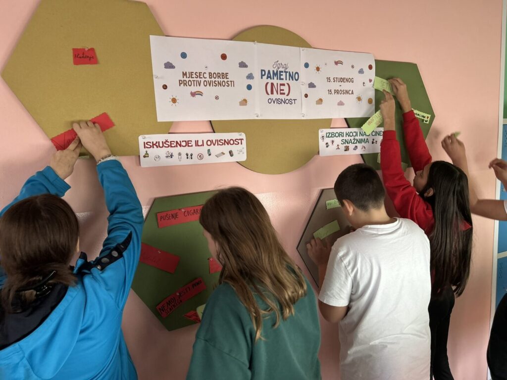 Učenici predmetne nastave obilježili su Mjesec borbe protiv ovisnosti, koji se u Republici Hrvatskoj provodi od 15. studenoga do 15. prosinca, s ciljem podizanja svijesti o štetnosti različitih oblika ovisnosti te poticanja zdravih stilova života i odgovornih izbora kod djece i mladih.