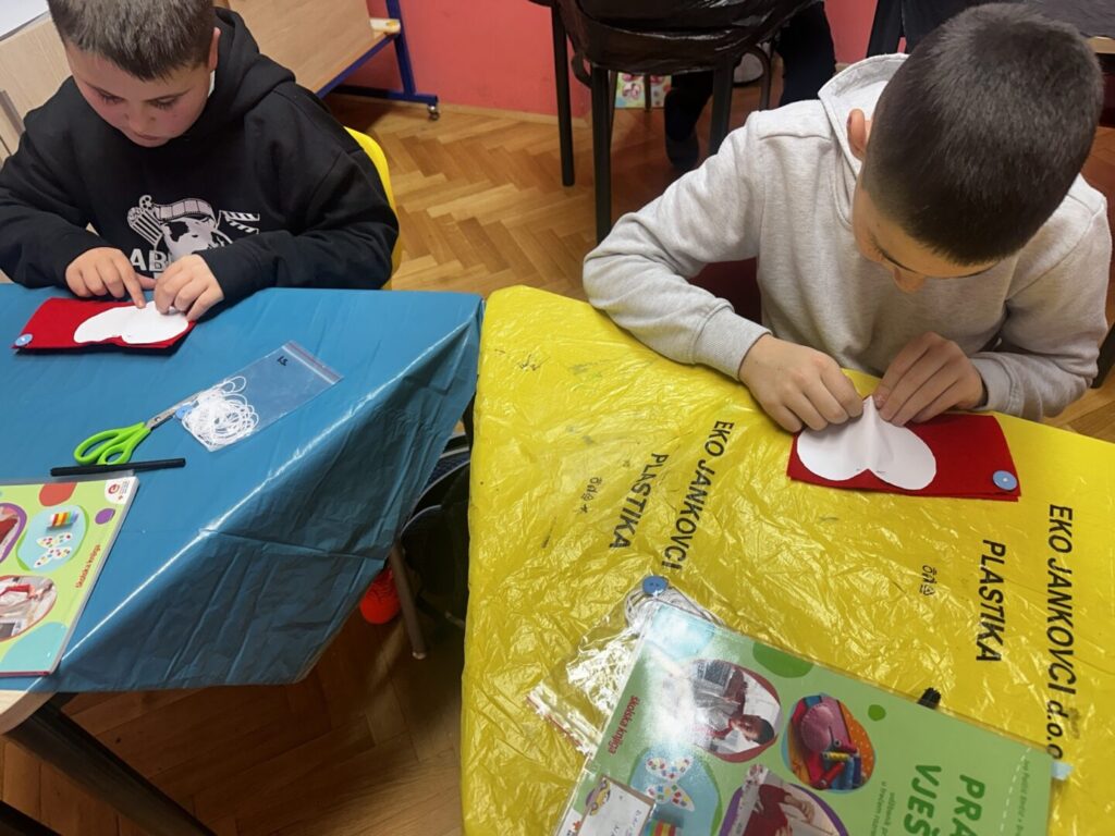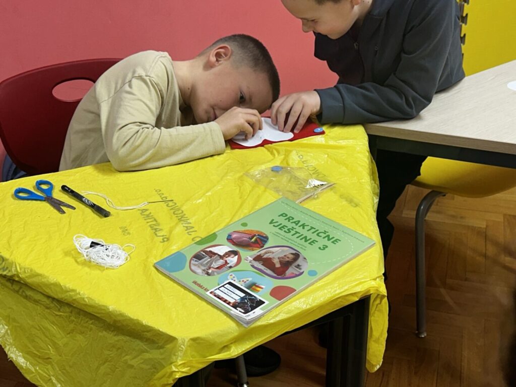 Šivanje gumba zahtjeva finu motoriku i nekoliko uzastopnih koraka, a rezanje tkanine je bilo teško zbog nedovoljno oštrih škara. Svi su učenici dobili učiteljičinu pomoć i uspješno su završili prišivanje gumba na tkaninu, krojenje i šivanje srca od tkanine. Učenici su bili spretni, vješti i jako zadovoljni svojim novim naučenim vještinama.