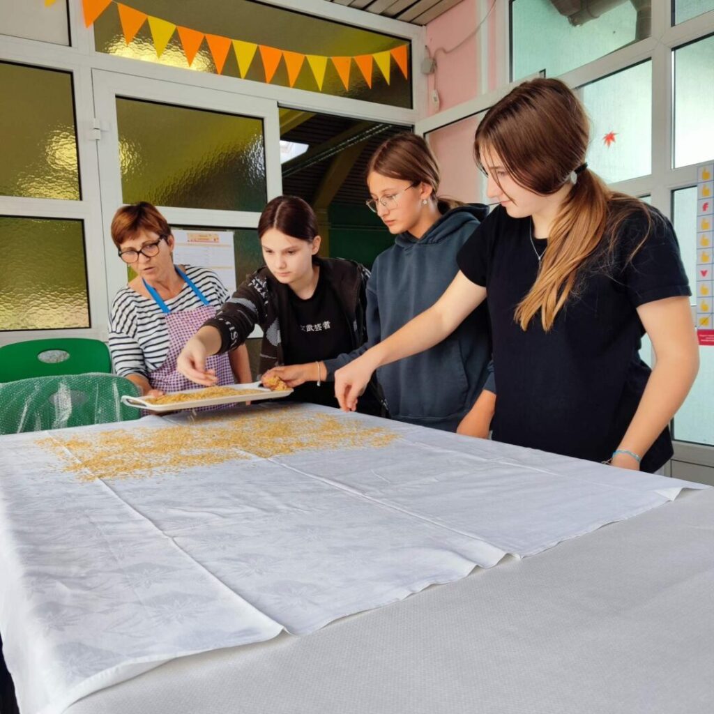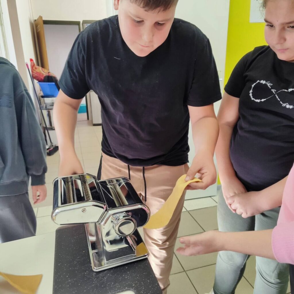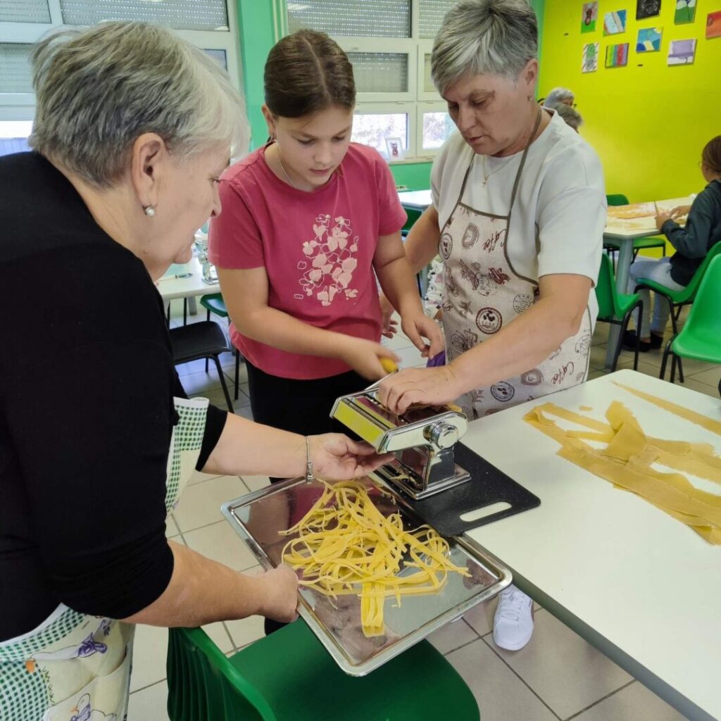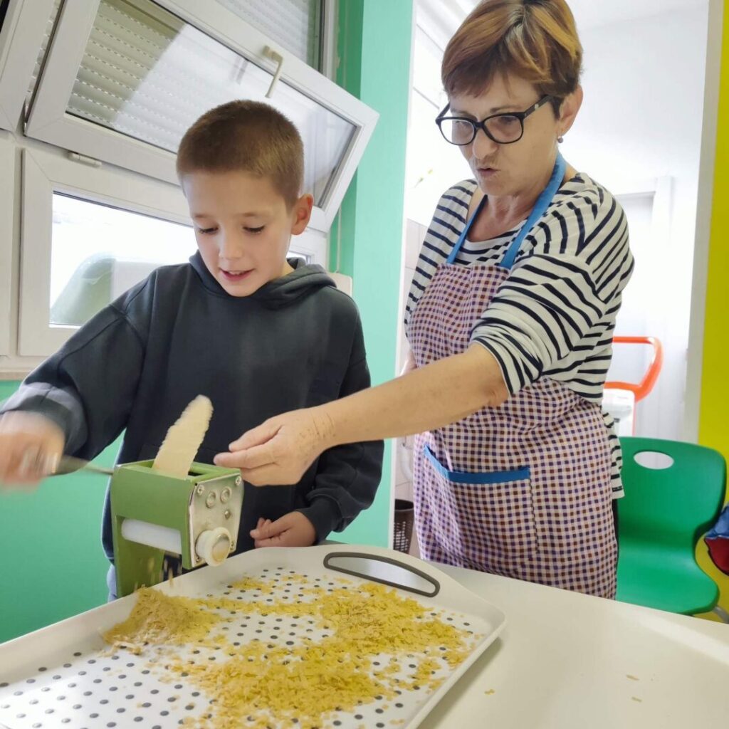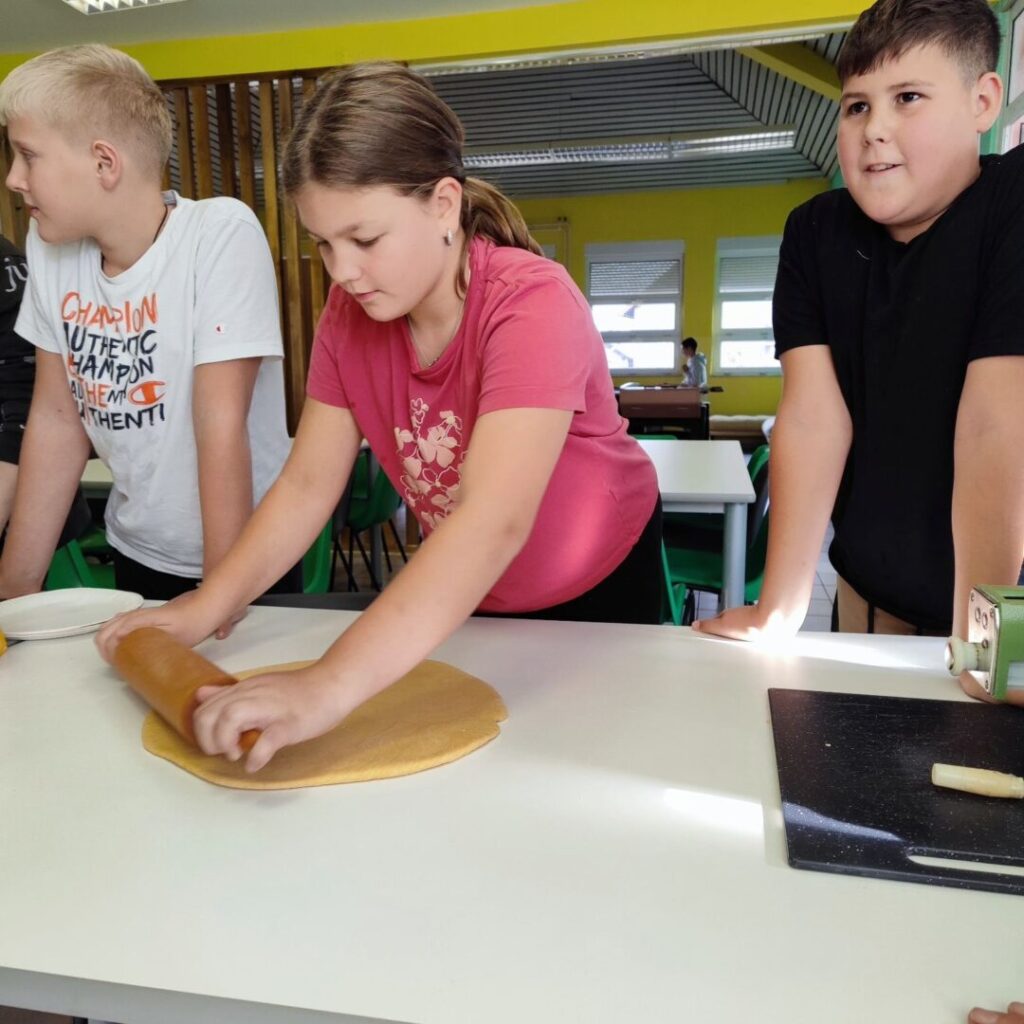 U sklopu B1 aktivnosti Domaćinstvo naši su učenici sudjelovali u edukativnoj i kreativnoj radionici u suradnji s Udrugom žena Slakovci. Tijekom radionice učenici su, uz stručno vodstvo i pomoć članica Udruge, izrađivali domaće rezance i tjesteninu koja će se koristiti za pripremu obroka u školskoj kuhinji.